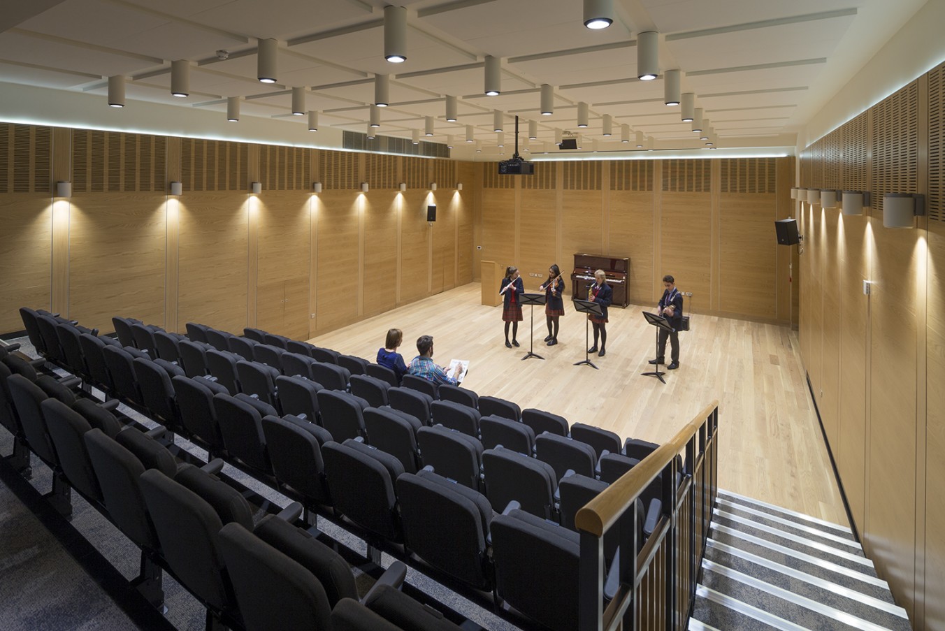 The music school features a basement built on pile foundations and the main structure consists of in-situ poured concrete walls to provide superior sound proofing qualities. It features specialist music classrooms, 10 instrumental tuition rooms, a drumming suite and a high-tech recording studio. There is also a 140-seat lecture theatre which doubles as a cutting-edge performance venue.